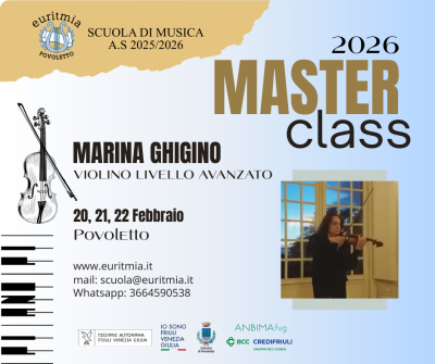 Da venerdì 20 a domenica 22 febbraio si terrà il masterclass di Violino – Livello Avanzato con la docente Marina Ghigino.